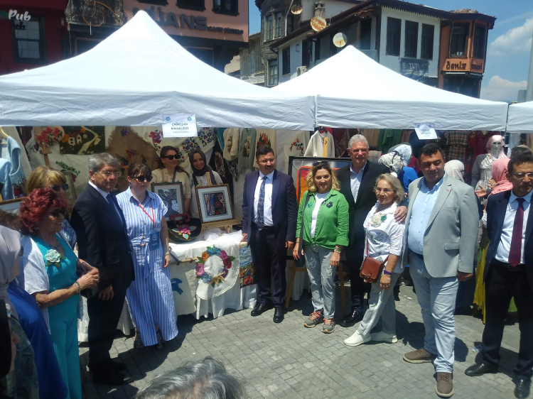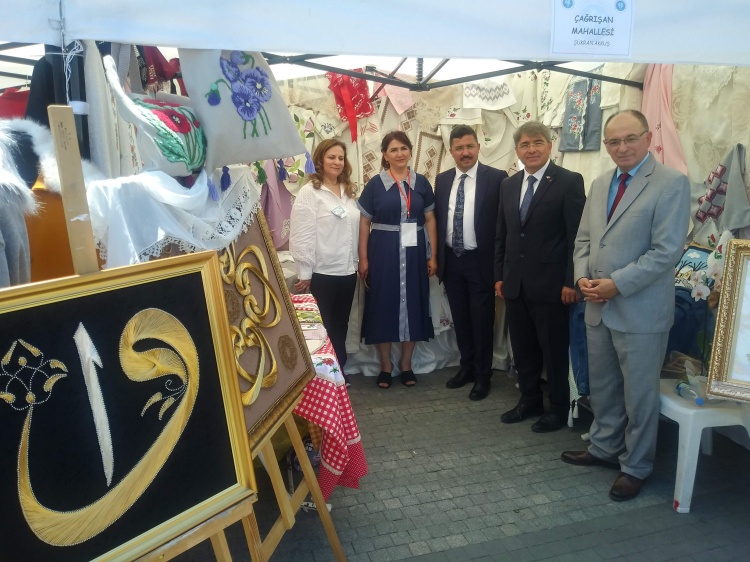 Protokol üyeleri daha sonra sergide, kurslarda ortaya çıkan el emeği göz nuru ürünleri yakından inceleyerek tüm stantları ziyaret etti. Kursiyerlerin yaratıcılığı ve emekleri takdir edildi.
