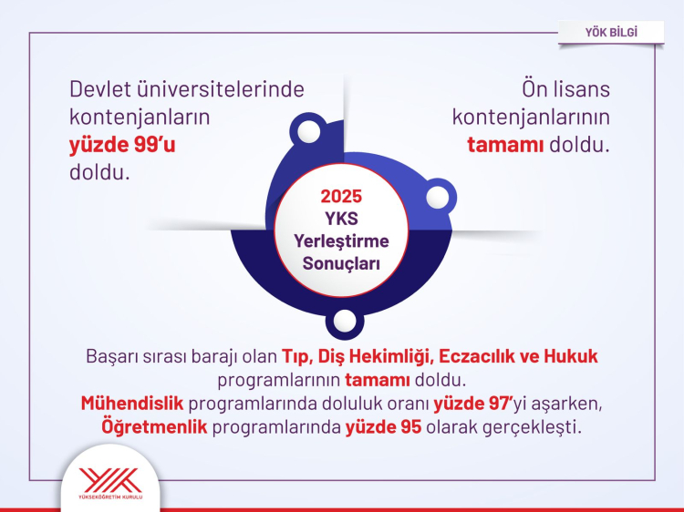 ANKARA (İGFA) - Yükseköğretim Kurulu (YÖK) Başkanı Erol Özvar, 2025 Yükseköğretim Kurumları Sınavı (YKS) yerleştirme sonuçlarına ilişkin sosyal medya hesabından yaptığı paylaşımda, sonuçların Cumhurbaşkanı Recep Tayyip Erdoğan’ın Türkiye Yüzyılı vizyonu doğrultusunda yükseköğretimde yenilikçi yaklaşımların başarıyla karşılık bulduğunu gösterdiğini ifade etti.