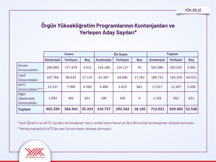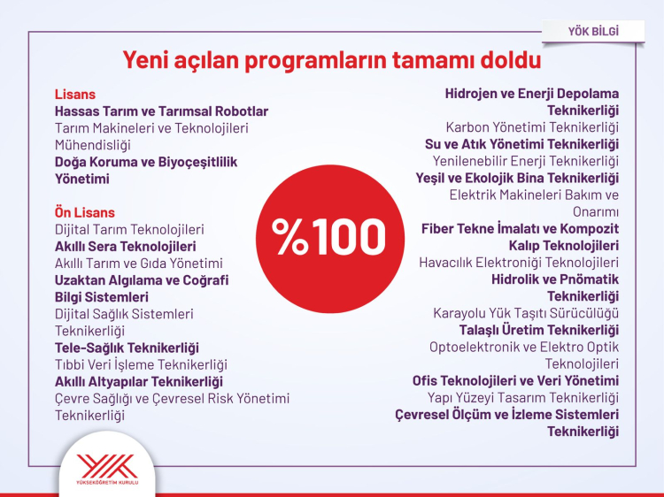 “Hem bugünün hem geleceğin iş gücü piyasasında kritik rol oynayacak yeni programların tamamı doldu" diyen Özvar, "Her 5 adaydan biri ilk tercihine yerleşti. Yüzde 42’si ilk üç tercihinden birini kazandı. İlk 5 tercihinden birine yerleşen adayların oranı yüzde 56 olarak gerçekleşti” dedi.