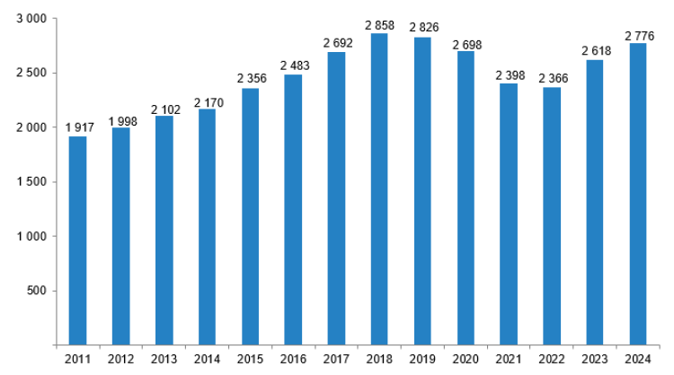 Kültür ve Turizm Bakanlığı ile Devlet Tiyatroları ve Opera Balesi Genel Müdürlüklerinin idari kayıtlarına dayanan verilere göre; 2024’te sinema salonu sayısı yüzde 6 artarak 2 bin 776’ya, koltuk sayısı 317 bin 274’e yükseldi. Toplam 736 film vizyona girerken (295 yerli, 441 yabancı), seyirci sayısı yüzde 4,9 artışla 32 milyon 538 bin 289’a ulaştı. Yerli film seyircisi yüzde 34,7 artarak 18,5 milyon, yabancı film seyircisi ise yüzde 18,6 azalarak 14 milyon oldu.