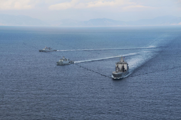 Milli Savunma Bakanlığı, Doğu Akdeniz’de; PNS YAMAMA, TCG BÜYÜKADA ve TCG DERYA ile icra edilen seyir ve gemicilik eğitimlerinden görüntüler paylaştı.