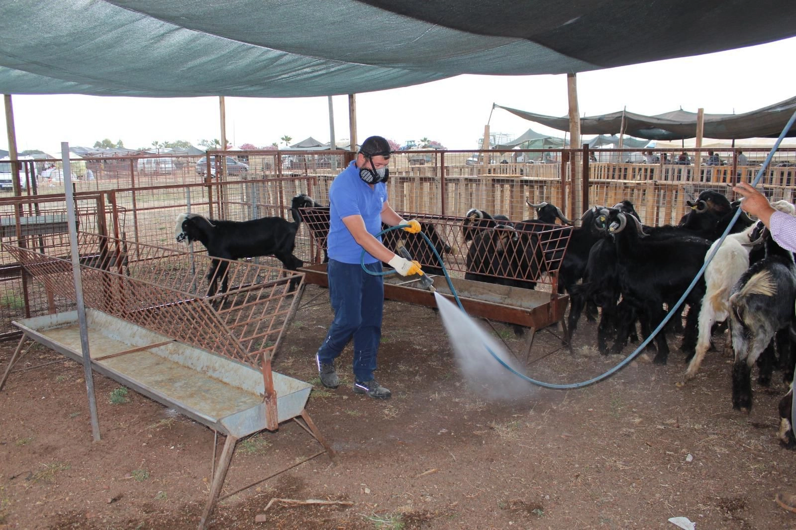 Mehmet ŞENTÜRK / ANTALYA (İGFA)- Kumluca’daki canlı hayvan satış pazarında, vektörle mücadele ekipleri tarafından her gün düzenli olarak karasinek larvalarına karşı ilaçlama çalışması yapılıyor.