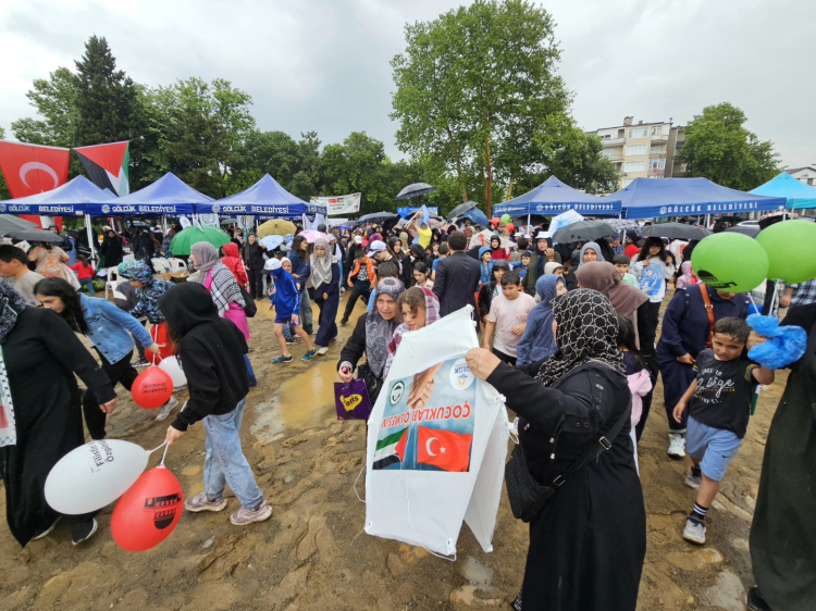 Gazze’deki çocukların yaşadıkları insanlık dışı duruma dikkat çekmek için gökyüzüne umut uçurtmalarının uçurulacağı etkinlik yoğun sağanak yağmur altında başladı. Kuran’ı Kerim tilaveti ve Filistin’deki zulmün son bulması için duaların edilmesi ile başlayan etkinlik, konuşmalar ile devam etti. Hava koşulları nedeniyle uçurtmaların gökyüzüne salınamadığı etkinlikte söz alan Gölcük Belediye Başkanı Ali Yıldırım Sezer, yağmur altında toplanan başta çocuklar olmak üzere tüm hemşehrilerine teşekkür etti.