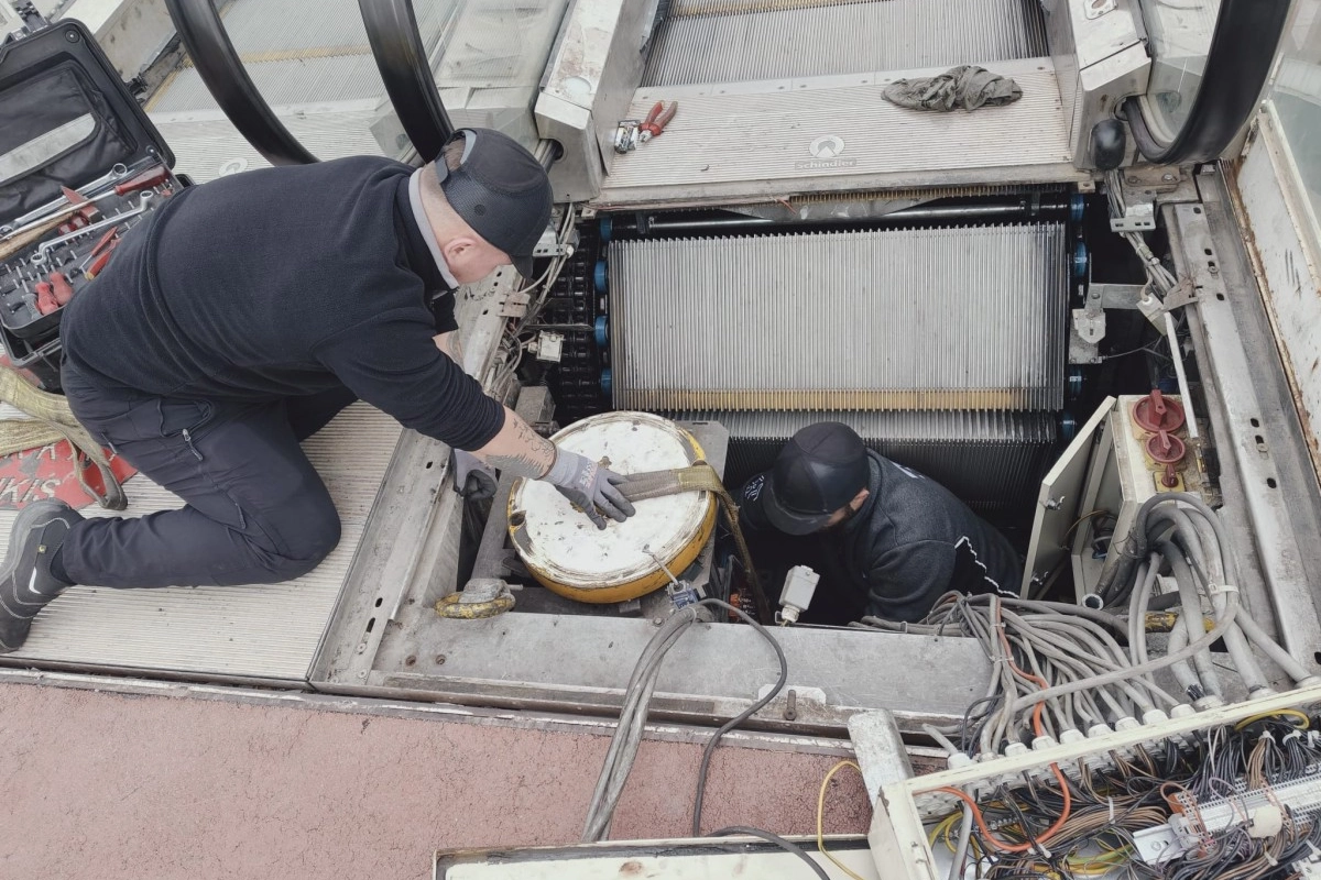 Kocaeli Büyükşehir, vatandaşların daha konforlu hizmet alabilmesi adına kent genelindeki yürüyen merdivenlerin aylık bakım çalışmalarına devam ediyor.