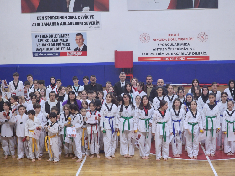 Kocaeli'de Gölcük Belediyespor bünyesindeki Taekwondo branşında bulunan 270 sporcu, düzenlenen törenle kuşak atladı.