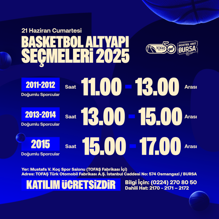 TOFAŞ basketbol altyapı 2025 seçmelerı̇ 21 Hazı̇ran'da