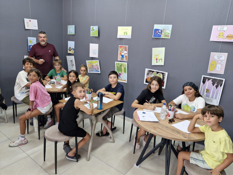 Ayvalık’ta minik sanatçılar karikatür atölyesinde buluştu