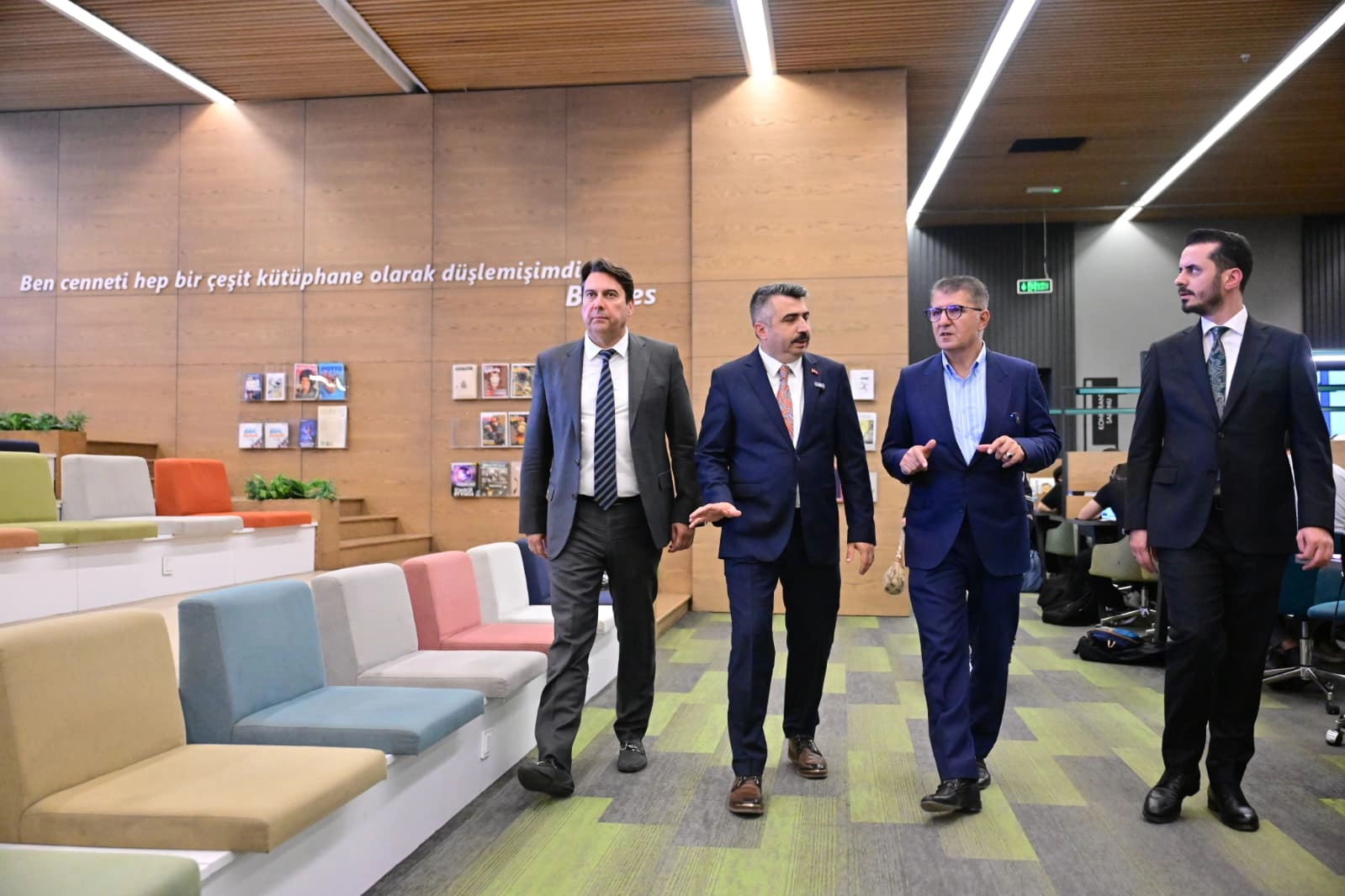 Yıldırım Belediye Başkanı Oktay Yılmaz ile birlikte önce Mümine Şeremet Uyumayan Kütüphanesi’ni ziyaret eden AK Parti MKYK Üyesi Hilmi Türkmen; 24 saat hizmet veren, ücretsiz çay ve çorba ikramlarının yapıldığı kütüphane hakkında bilgi alıp, gençlerle sohbet etti.