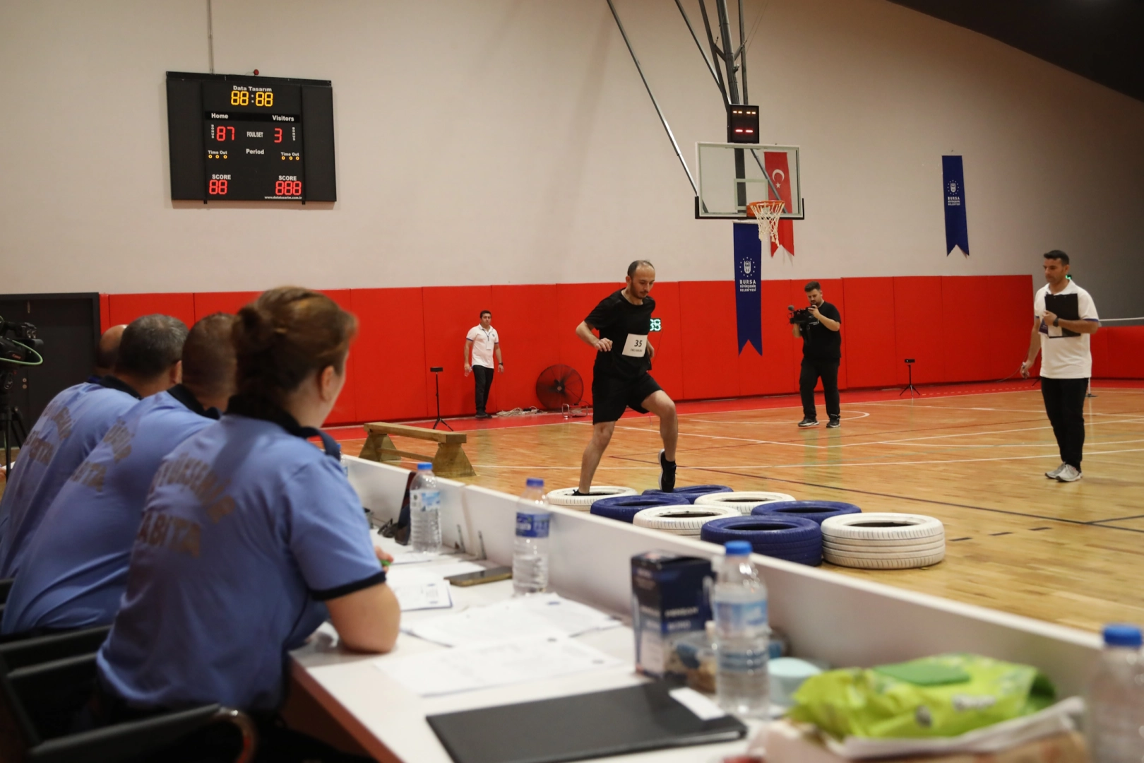 Başvuru sırasında boy ve kilo şartlarını taşıyan adaylar, yazılı sınavından sonra Vakıf Bera Parkı Kapalı Spor Salonu’nda özenle hazırlanan spor parkurunda fiziki dayanıklılık testine girdi. Bursa’nın yanı sıra farklı kentlerden de sınav için gelen genç adaylar, sıçrama tahtası, lastik geçme, ağırlık taşıma, sağlık topu, minder, slalom çubukları ve engel etabı gibi 7 etabı geçti. En iyi dereceyi elde etmek için ter döken adaylar, parkurun ardından sözlü mülakata girdi.