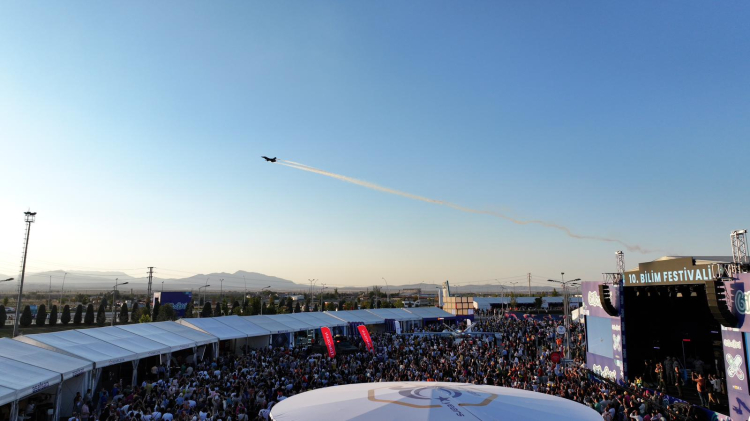 Konya Bilim Festivali kapsamında Türk Hava Kuvvetleri'ne bağlı akrobasi timi Solo Türk'ün yaptığı muhteşem hava gösterisi nefesleri kesti. Solo Türk bu akşam da 18.30’da BilimFest’e özel bir gösteri uçuşu daha yapacak.